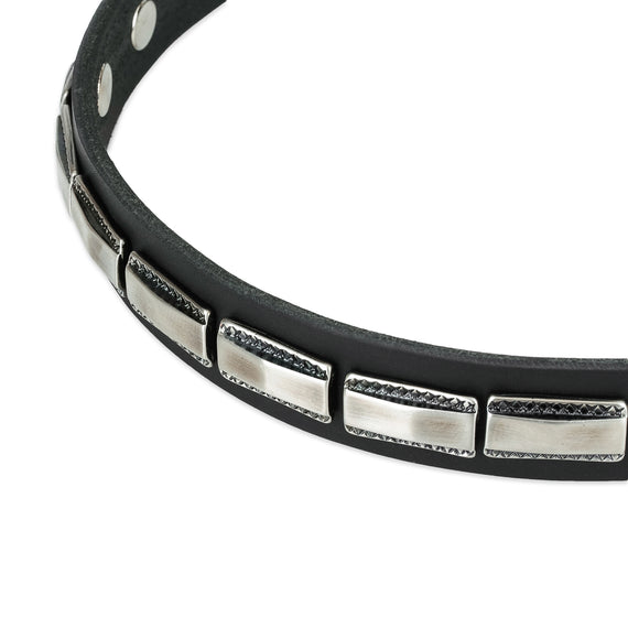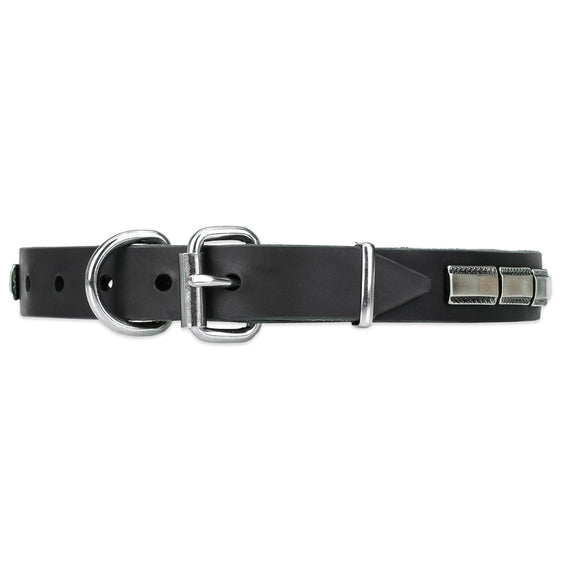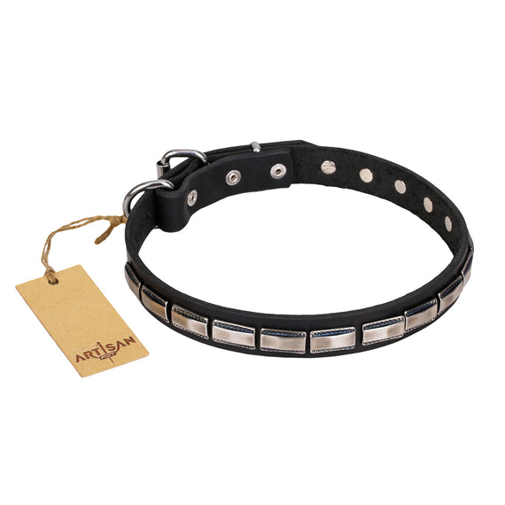 Handmade Artisan Leather Dog Collar With Chrome Plated Decor from Europe.
